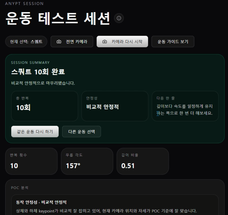 어차피 먼저 MVP형태로 최소 기능만 할거였으니까 굳이 많은 기능 구현할 필요 없이 간단 운동 분석만 Codex를 이용해서 빠르게 요청해서 만들었습니다.