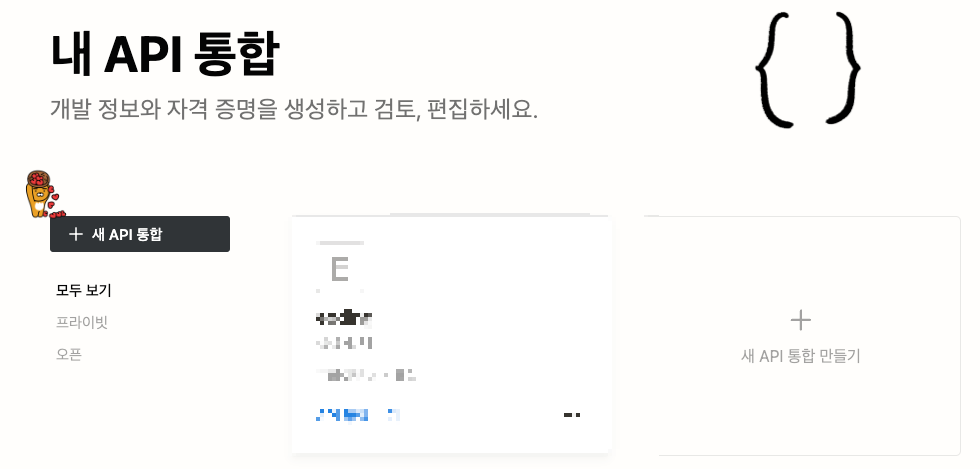5. 내가 만든 API 통합 클릭 후 시크릿 복사
