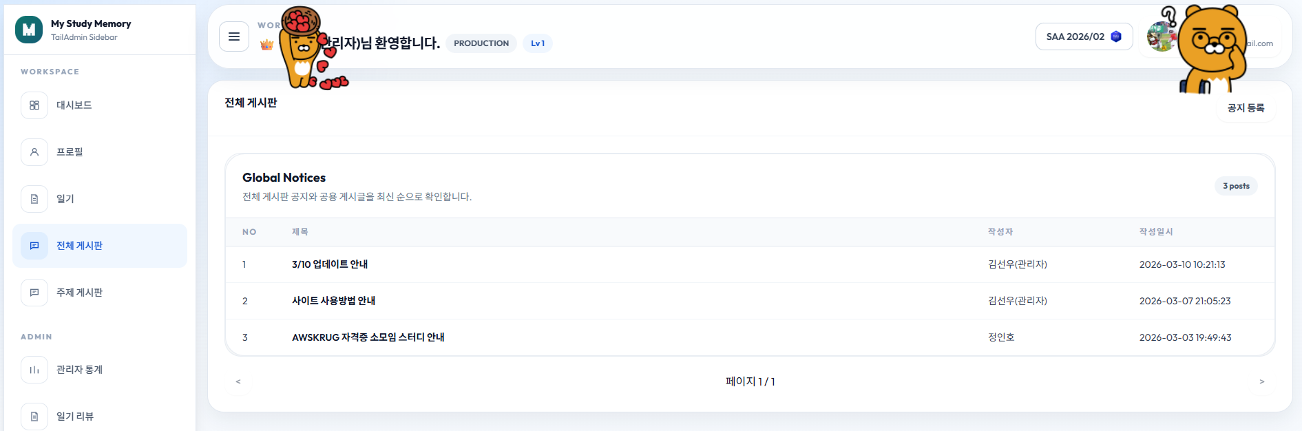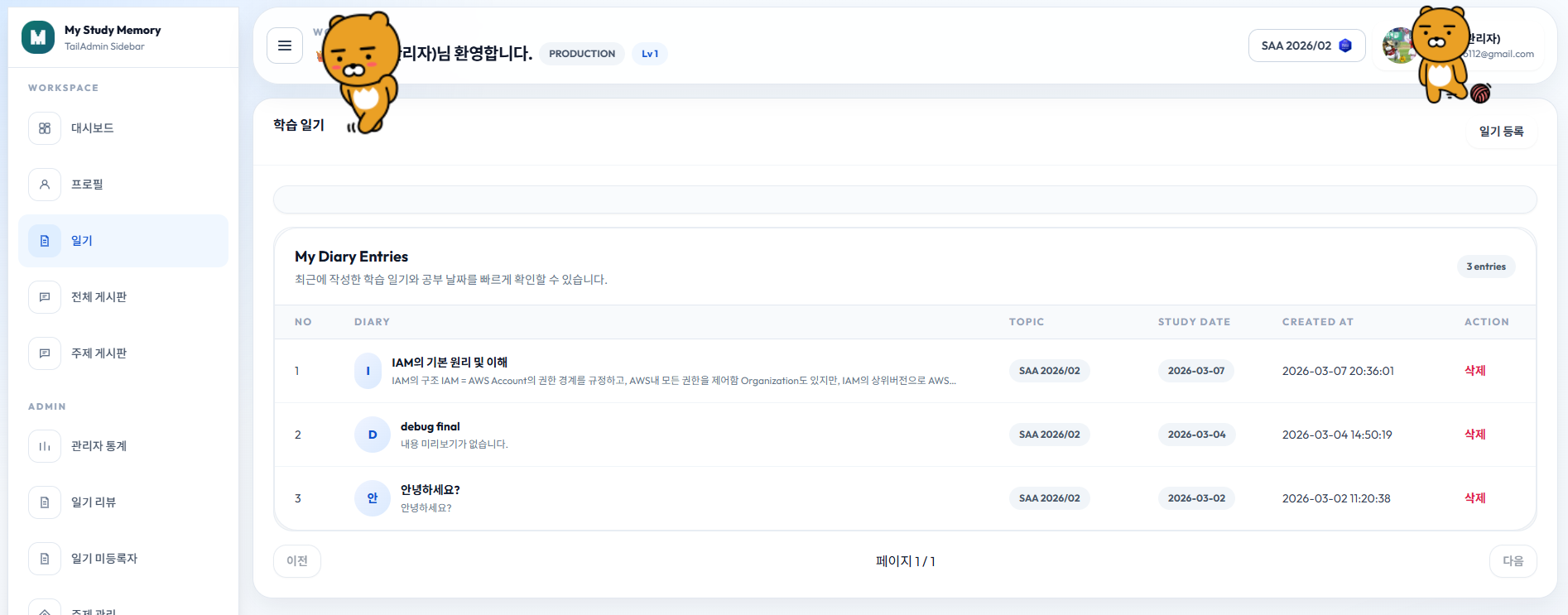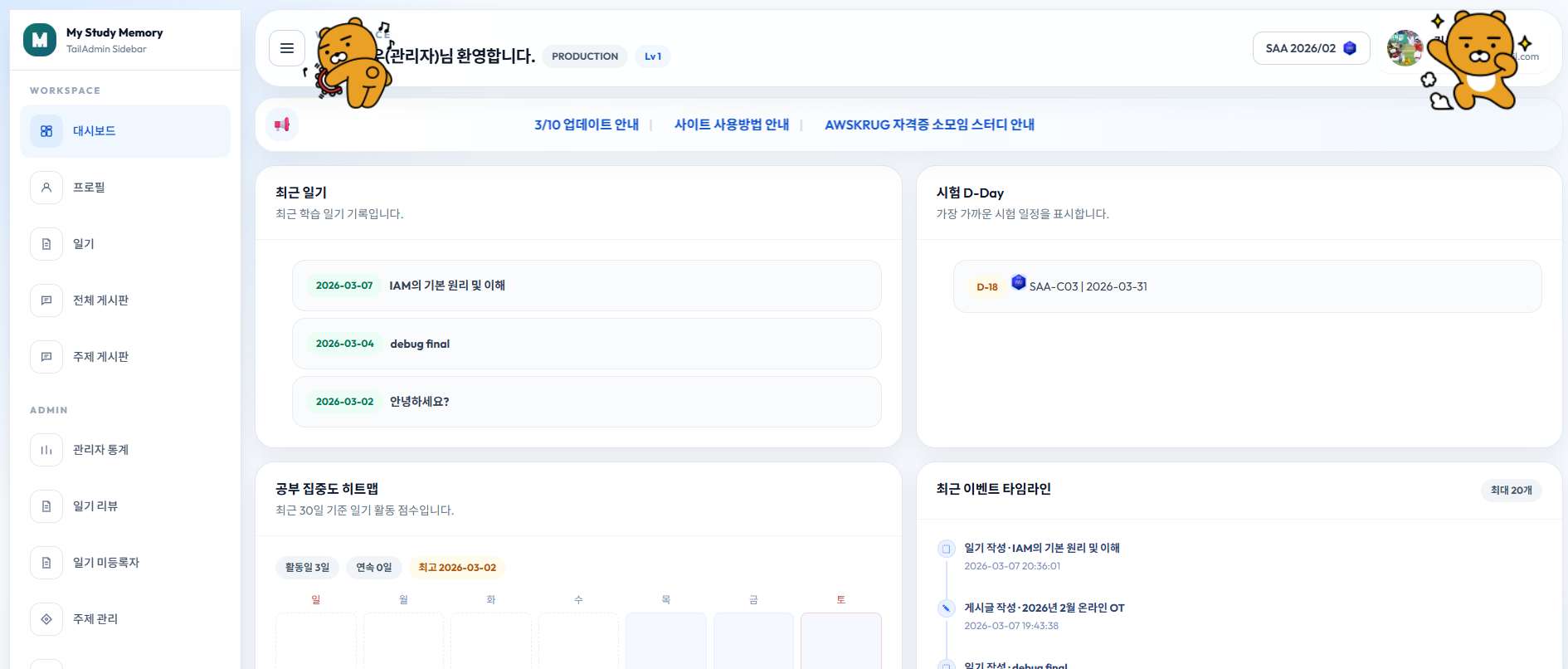 단, 기존에는 제가 디자인을 잘 못해서 Coding Agent를 써도 정말 디자인이 맘에 안 들었었는데 이번엔 TailAdmin Template을 사용하여 깔끔하게 작업했습니다.