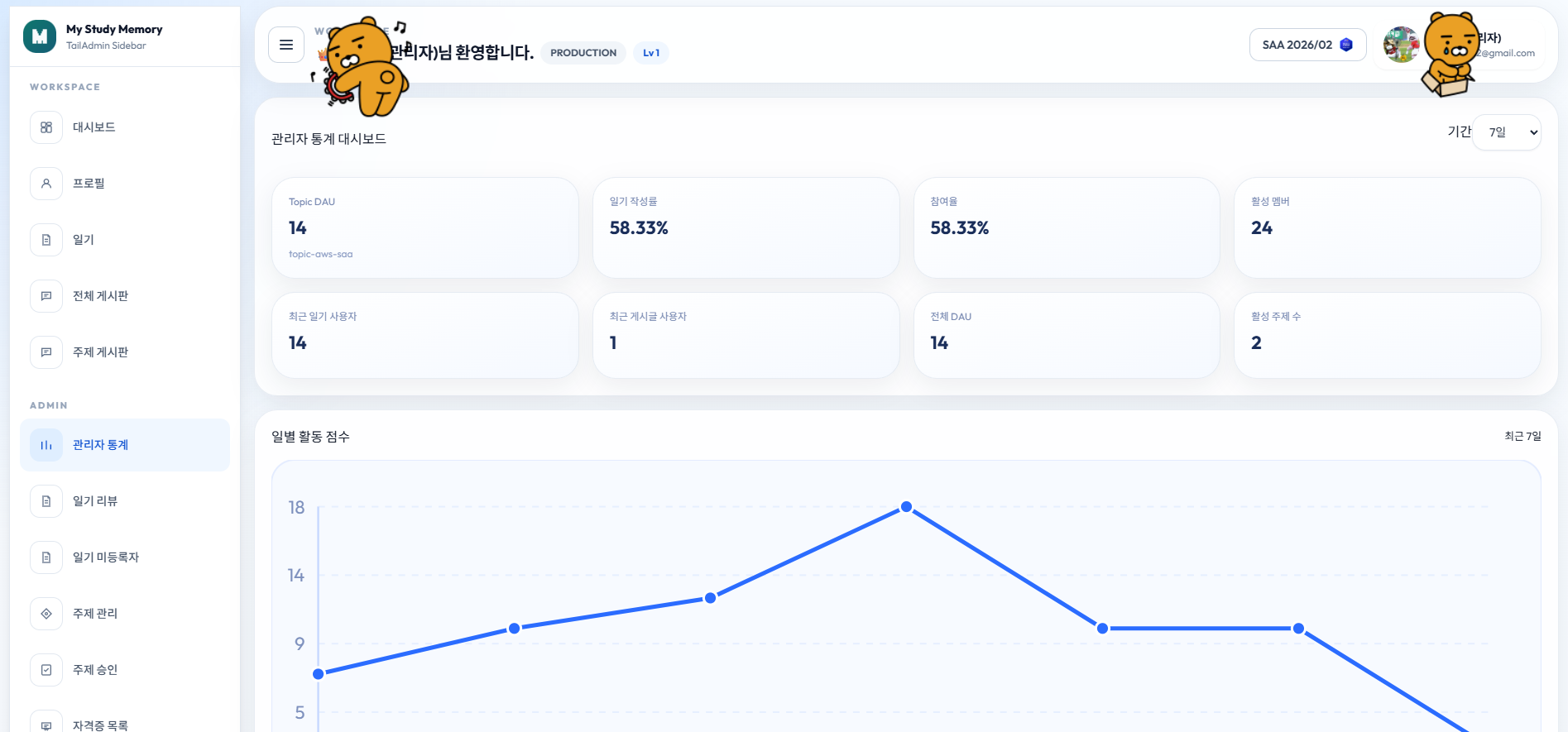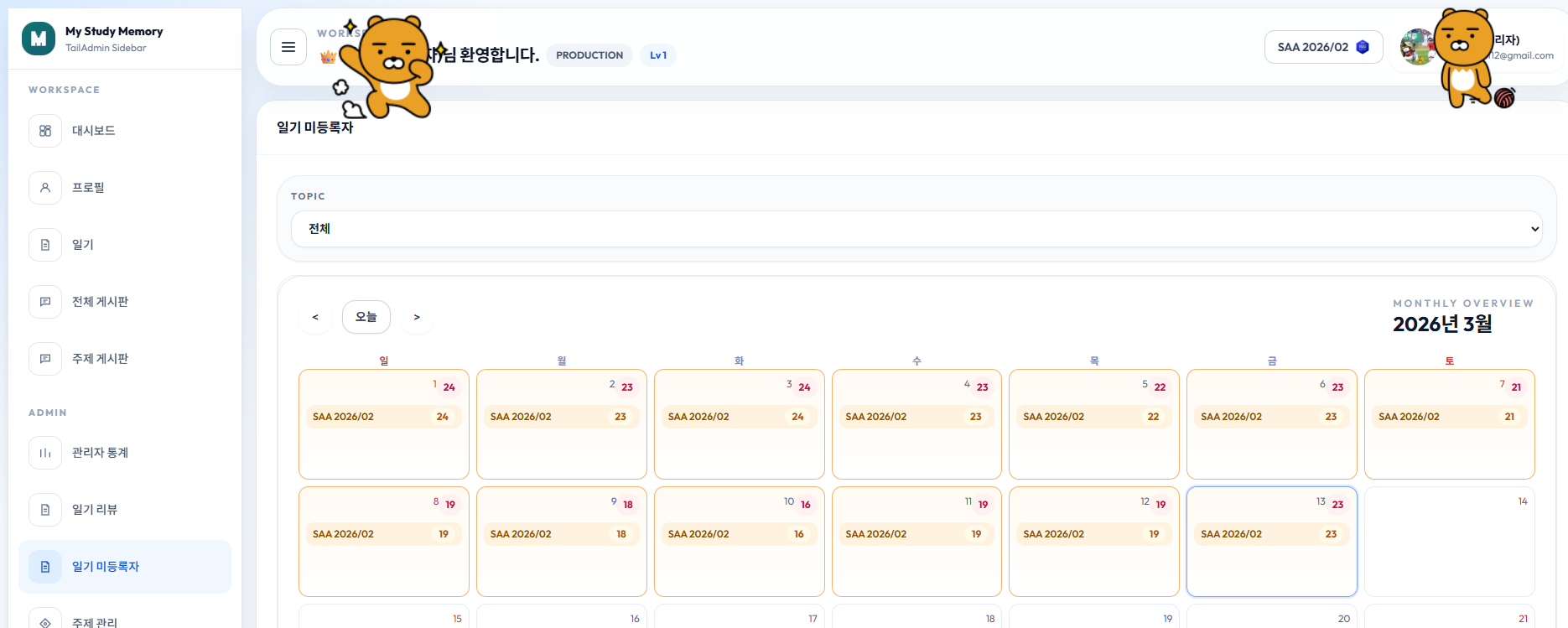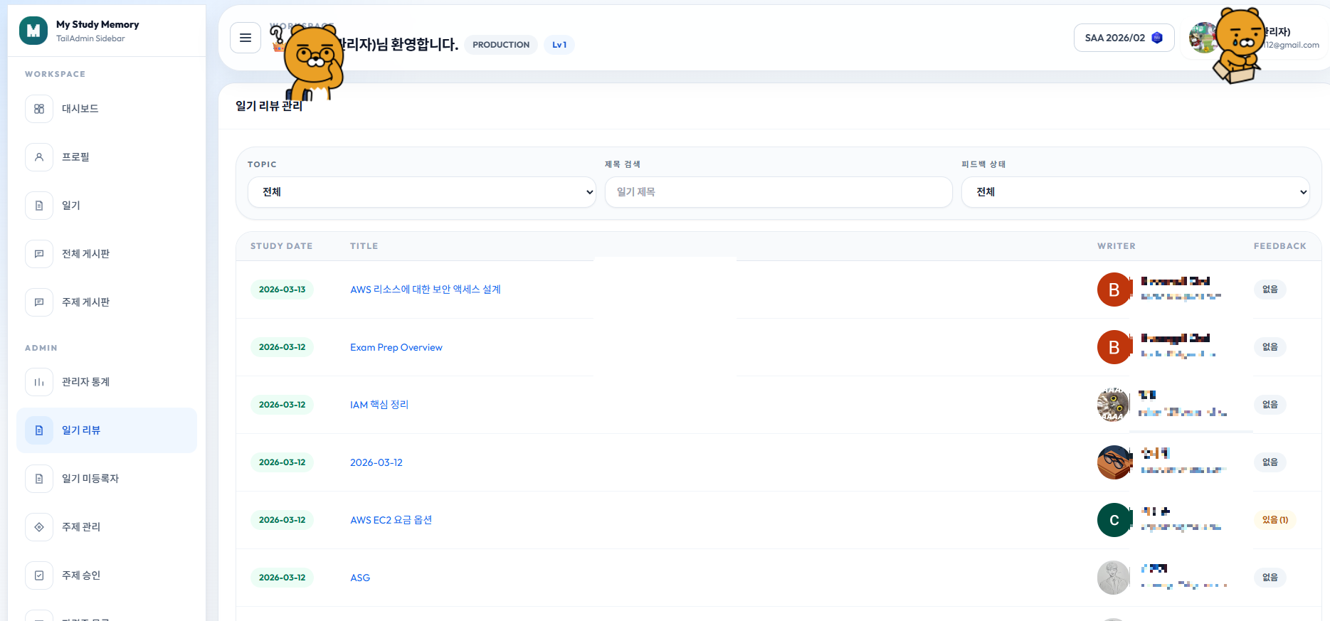 단, 기존에는 제가 디자인을 잘 못해서 Coding Agent를 써도 정말 디자인이 맘에 안 들었었는데 이번엔 TailAdmin Template을 사용하여 깔끔하게 작업했습니다.