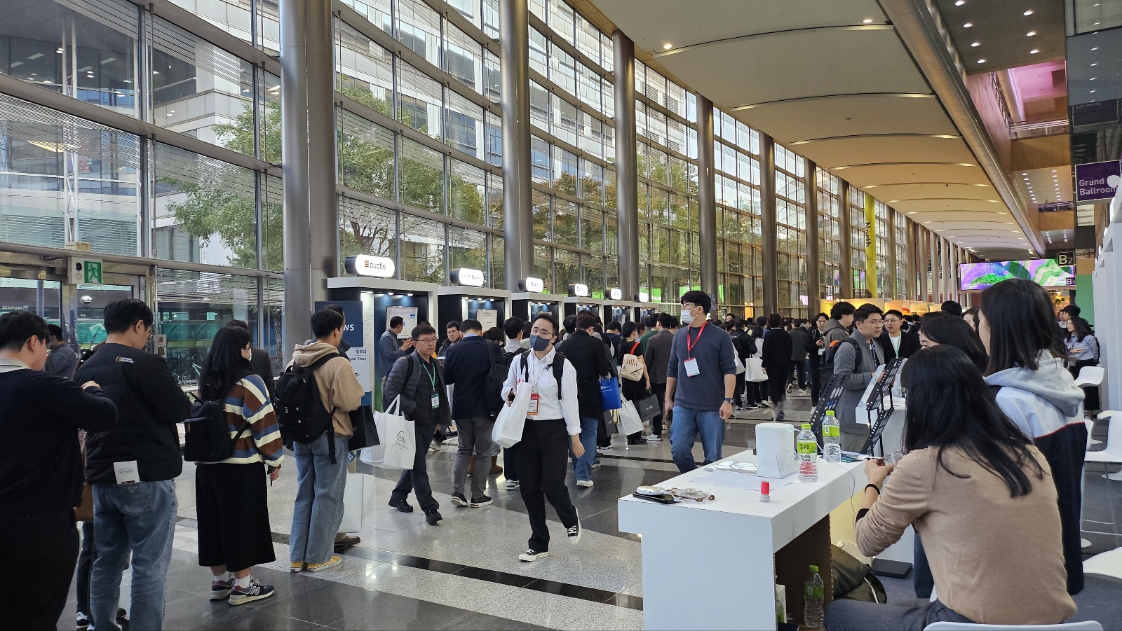 swag 받을 시간이 와서 기다리고 있는데 줄이 엄청 길었습니다. 마침 옆이 까페 쇼라는 행사를 하고 있어서 대기줄 라인이 물리다 보니 엄청 복잡했습니다.