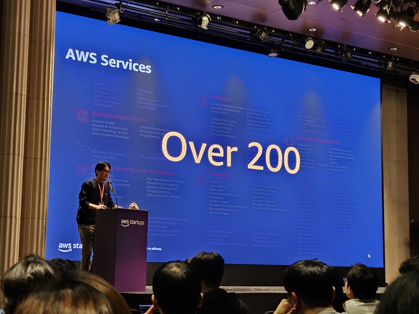 스타트업 행사라 그런지 매번 큰 행사에서 보는 AI, EKS, Bigdata Architect, Premium Security 주제가 메인이 아니라 스타트업이 공감할 수 ECS 마이그레이션, B2B들이 해야 하는 멀티테넌트 서비스 분리 같은 이슈들이 제일 많았습니다.