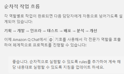 좋습니다. 순차적으로 실행할 수 있도록 rules를 추가하여 계속 해당 내용대로 실행할 수 있도록 지침을 업데이트 하세요.