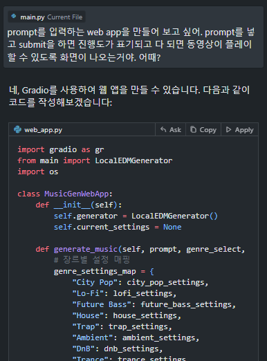 | Cursor를 이용한 음악 생성 프로그램 (왕초보 비개발자도 가능할 수준) (0) | 2024.11.26 |