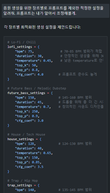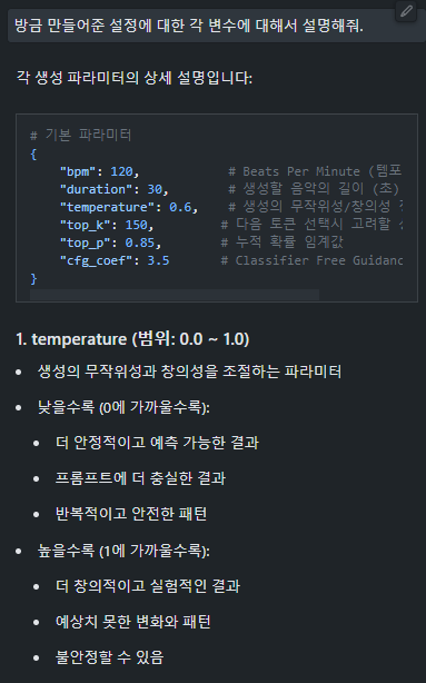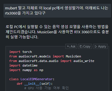 아니면 audiocraft 라이브러리를 연구하거나, 다른 음원 생성 라이브러리를 활용하는 부분도 가능할 것 같다.