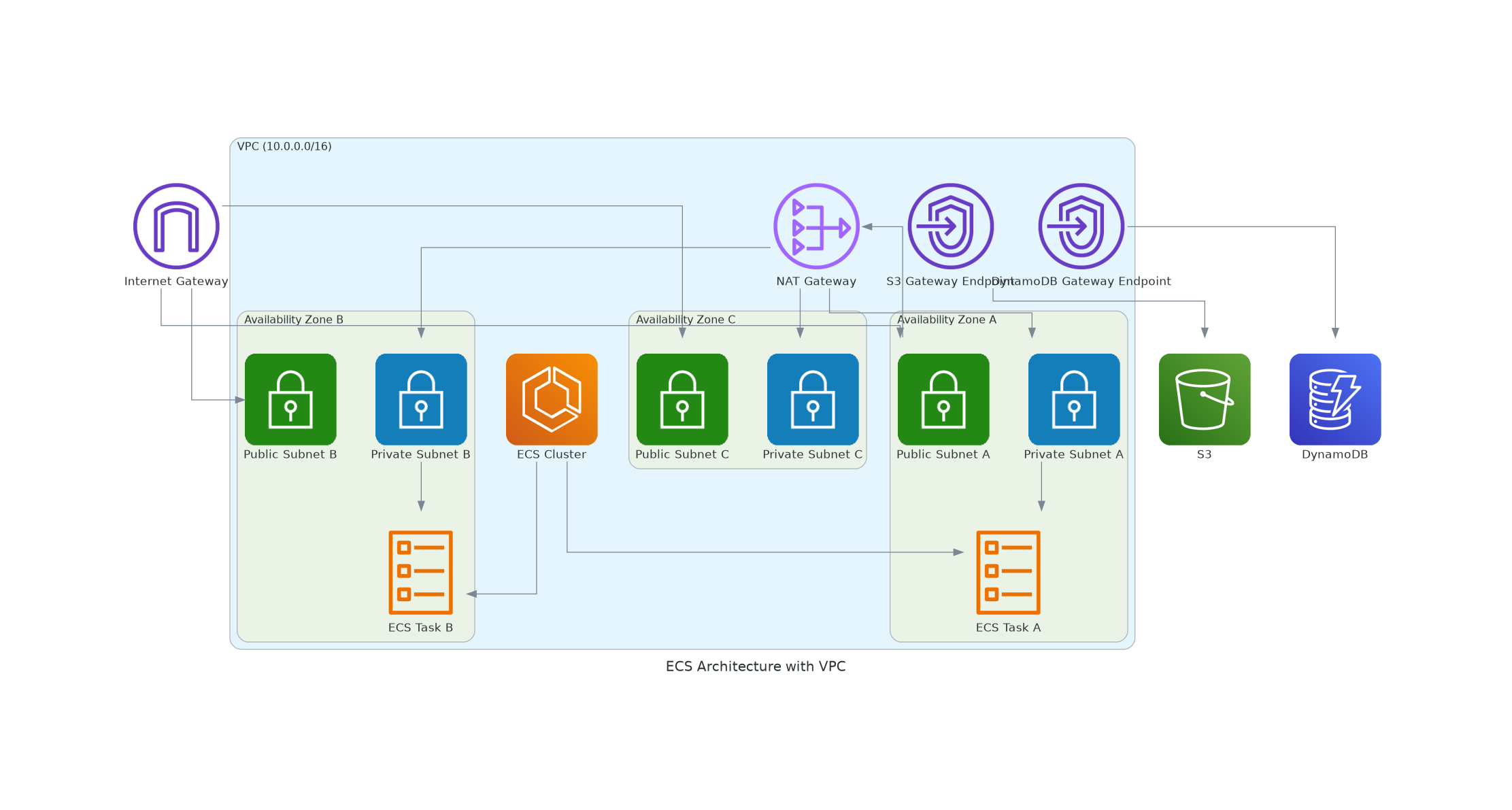 내 계정의 vpc 내 모든 정보, alb, ecs task 정보를 기반으로 아키텍쳐 만들어줘.