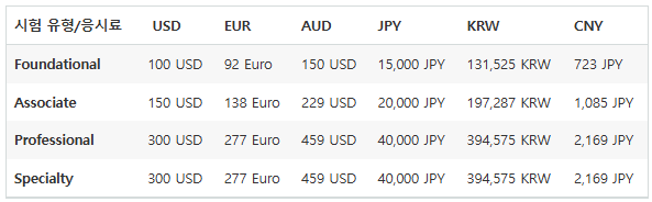 현재 시험비는 다음과 같습니다.