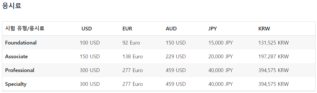 그리고 4월부터 시험비가 변경되었습니다. 종전 자격증 가격에서 아래와 같이 변경됩니다.