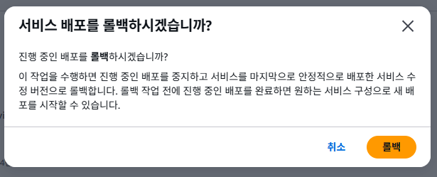 ECS 배포가 잘못되었거나 문제가 생겼을 때 클릭 한 번으로 마지막에 정상이었던 상태로 되돌릴 수 있어요.