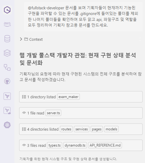 물론 전 지금 이작업을 지금 바로 하려는 것은 아니고, 먼저 기존의 프로젝트에 대한 코드 분석을 먼저 해야했습니다. 원래 하던 프로젝트였기 때문에 이대로 그대로 돌렸다간 당연히 context가 꼬이거나 하는 문제로 역할간의 제대로 된 소통이 안될 것이 뻔했기 때문입니다.