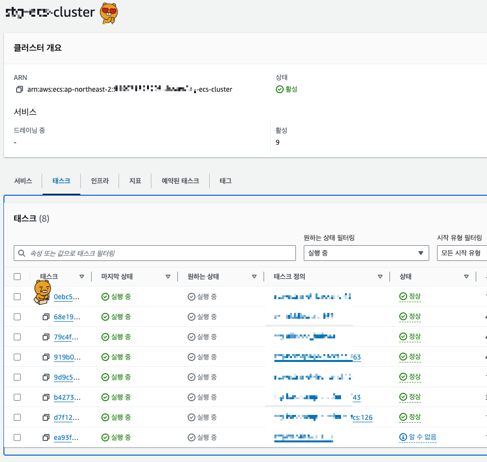 terraform apply 후 서비스 task를 전부 restart 시켰다.