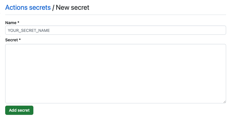 여기서 New repository secret을 클릭하면 아래와 같이 입력이 가능한 페이지가 나온다.