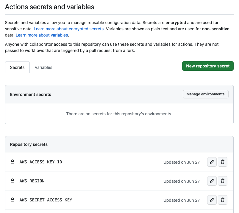 가 대표적이지만, 이 코드를 감추면서도 반드시 필요한 권한을 유지하기 위해 해당 예제에선 Github Secrets라는 것을 이용하고 있다.