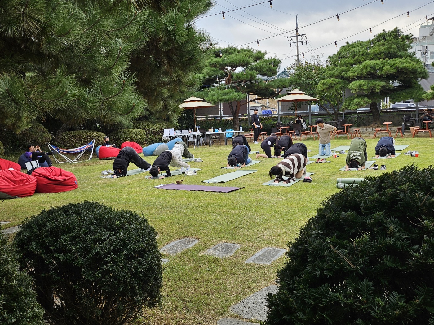 세션 중 특이하게 요가 행사를 하고 있었습니다.