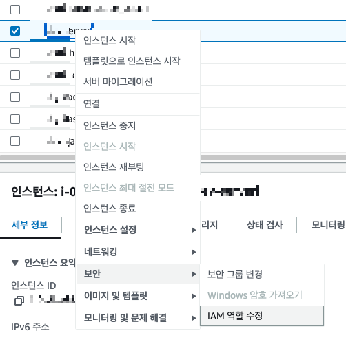 이제 EC2로 넘어와서 서버를 클릭한 뒤 IAM 역할 수정을 다시 선택하자.